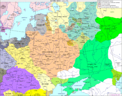 В 1300 году митрополит всея Руси Максим перенёс свою резиденцию из опустошённого татарами Киева во Владимир-на-Клязьме[40]. Религиозный центр русских земель переместился во Владимиро-Суздальское княжество, где ключевую роль начала играть Москва. В XIV веке она смогла победить Тверское княжество в борьбе за главенство в Северо-Восточной Руси[41].