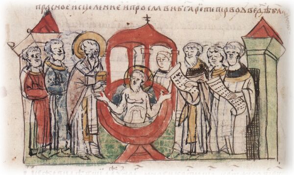 Развитие государства ускорило процесс консолидации древнерусской народности. При князе Ярославе Владимировиче Русь достигла расцвета[25]: были созданы первые монастыри[26], строились каменные церкви, зародилось летописание[27], появился первый в русской истории письменный свод законов[28].