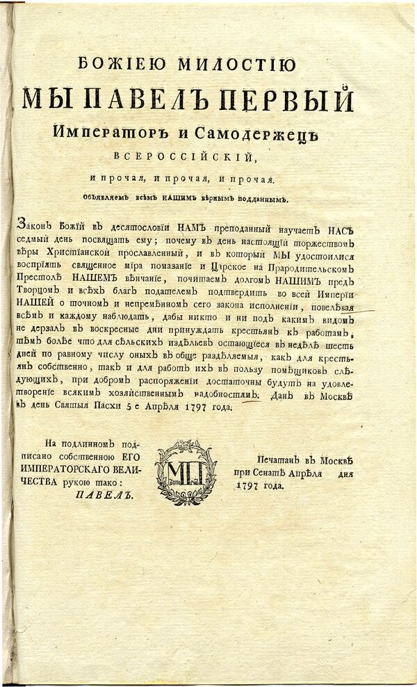 Павел I в 1797 году издал указ о престолонаследии, согласно которому трон следовало передавать от отца сыну[204]. Хотя сам монарх в 1801 году пал жертвой последнего в российской истории дворцового переворота, его указ действовал до последних дней империи[205].