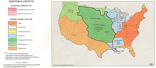 В 1803 г. благодаря удачным действиям американских дипломатов между Северо-американскими Соединёнными штатами и Францией была заключена сделка, получившая название Луизианская покупка и позволившая Штатам практически удвоить свою территорию. Но главным достижением этой сделки для США того времени было предоставление реки Миссисипи, важной транспортной артерии, которая ранее была пограничной рекой, в полное распоряжение американских фермеров и торговцев.