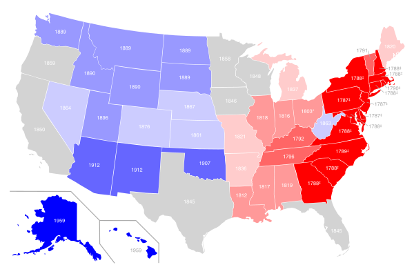 По окончании конфликта с англичанами началась экспансия Соединённых Штатов в западном направлении. Основная территория США сложилась к 1912 году, когда в их континентальной части образовался последний штат, Аризона. К тому времени территории Аляски и Гавайев также стали принадлежать США, но статус штатов они получили лишь в 1959 году.