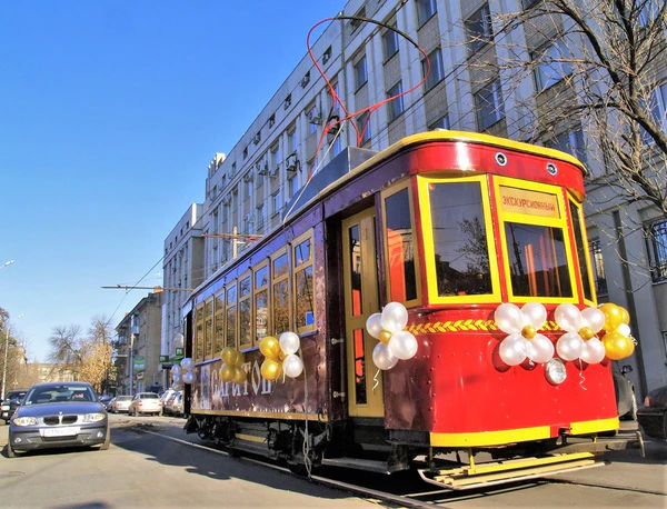 В 1908 году в Саратове появляется электрический трамвай. Саратовская трамвайная система — одна из старейших трамвайных систем России. Строительство трамвая в Саратове началось в августе 1907 года на Ильинской (ныне Чапаева) улице. К этому времени в Саратове уже 20 лет работала конка. 5 октября 1908 года по Немецкой линии прошёл пробный рейс, и на следующий день началось регулярное трамвайное движение. В конце октября 1909 года в городе действовало уже девять линий, проходивших по улицам Немецкой, Московской, Ильинской, Константиновской, Большой и Малой Горным, Большой Сергиевской, Кладбищенской, Александровской. Плата составляла от 3 до 5 копеек и зависела от расстояния. Скорость в городе должна была быть не более 15 и не менее 12 вёрст в час, а вне города не менее 20 вёрст в час. Летом 1910 года была открыта Дачная линия от угла Московской и Астраханской улиц по улице Астраханской до Трофимовского разъезда (район 5-й Дачной) и вскоре продлена в отдалённый дачный район «Кумысная поляна»[23]. Трамвай приобрёл огромную популярность среди горожан. Вклад трамвая отмечен даже в топонимике города: до сих пор микрорайоны на западе города носят названия, происходящие от нумерации остановок той Дачной линии — 3-я Дачная, 5-я Дачная, 6-я Дачная и т. д.