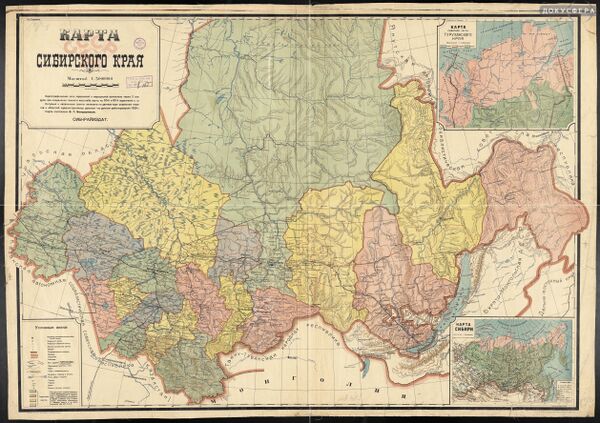 В 1925 году вместо существовавших раньше губерний был образован Сибирский край с центром в Новосибирске, в 1930 разделённый на Западно-Сибирский край и Восточно-Сибирский край, впоследствии также разделённые на области.