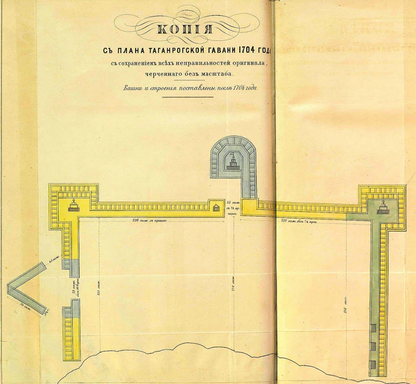 «… Он (Пётр I) устроил на Азовском море в местности, именуемой Таганрог, прекрасную гавань, названную им Троица, в которой суда, пройдя без груза устьем Дона, под Азовом окончательно вооружались и могли стоять совершенно безопасно. Все, видевшие эту гавань, сознаются, что это одна из наилучших гаваней Европы».
