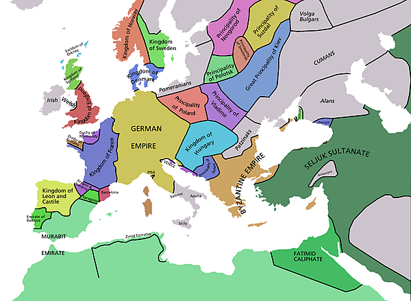 В IX и Х в. на территории Центральной Азии среди огузов распространились ислам и зачатки более высокой арабской культуры; военное искусство под арабским влиянием усовершенствовалось. В Х в. из Туркестана вышли завоевательные тюркские орды; одни завладели Бухарой, где царствовала династия Саманидов, другие овладели Персией и основали царство Газневидов[4]. Это последнее вело борьбу со своими же единоплеменниками в Туркестане, тюрками-сельджуками, окончившуюся торжеством последних. В течение XI в. они завоевали Хорасан, Герат, Армению, Грузию, потом Сирию и Египет.
