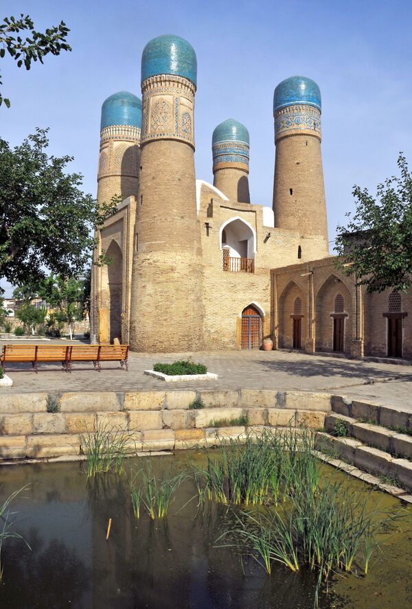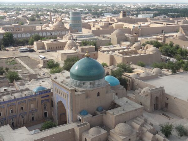 Караханид Мухаммед Арслан-хан (1102-1130), правивший в Бухаре, был известен своей градостроительной деятельностью: его правлением датируется постройка Большого бухарского минарета и попытки восстановить Пайкенд. Арслан-хан выстроил в Искиджкете рабат, а в Шарге — соборную мечеть. По его приказу соорудили городскую стену Бухары в два ряда.[95] Мухаммед Арслан-хан велел построить новую соборную мечеть Бухары, которое было выстроено с большим великолепием и окончено в 1121 году.[96] Позже он приказал построить дворец в бухарском арке, а через несколько лет он выстроил новый дворец в квартале Дерваздже (в северо-западной части города), в улице Бу-Лейса, где были построены две бани. Впоследствии Арслан-хан обратил этот дворец в медресе, а для себя выстроил новый дворец около ворот Саъдабад (Бену Саъд), т. е. около юго-западной стороны Бухары.[97]