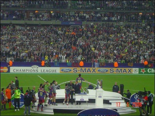 Сезон 2005/06 стал триумфальным. В ноябре 2005 года «Барса» разгромила «Реал» на «Сантьяго Бернабеу» со счётом 3:0; Роналдиньо заслужил овации даже от болельщиков хозяев. Команда легко выиграла Примеру и Суперкубок Испании, а 17 мая 2006 года в финале Лиги чемпионов в Париже одержала волевую победу над лондонским «Арсеналом» (2:1). Голы забили Это’о и Беллетти после голевых передач вышедшего на замену Ларссона[15].