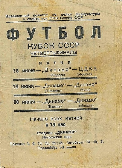 1936 год стал поворотным для отечественного футбола. Впервые был разыгран чемпионат страны среди команд спортивных обществ и ведомств. Московское «Динамо» стало первым чемпионом СССР, выиграв все 6 матчей весеннего первенства. В 1937 году динамовцы первыми в советском футболе добились «золотого дубля», став одновременно и чемпионами, и обладателями Кубка СССР. Также были проведены два матча с сборной Басконии. Оба матча динамовцы проиграли (1:2), (7:4). В 1938 и 1939 года у команды не ознаменовались яркими победами — победные места в эти годы доставались другим командам. В 1938 «Динамо» заняло 5-ю строчку в таблице, а в 1939 7-ю. Но в 1940 году динамовцы вернули себе первенство и также уверенно лидировали в чемпионате 1941 года. В военные годы чемпионаты страны, как известно, были прерваны, однако футбольные состязания не прекращались. Осенью 1941 года первенство не было завершено из-за введения в Москве осадного положения и наступления холодов. Но весной игры возобновились, и именно динамовцы победили в весеннем первенстве 1942 года. В 1941—1944 годах было проведено 5 чемпионатов столицы[5].