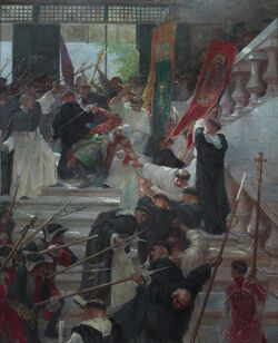 - К XIX веку появилась прослойка из испаноязычных католиков-филиппинцев, креолов и метисов, которые стали лидерами борьбы за независимость. Хосе Рисаль, самый знаменитый пропагандист, был арестован и казнён в 1896 году за подрывную деятельность. Вскоре после этого началась Филиппинская революция, руководимая обществом «трёх К» (Kataastaasan at Kagalang Katipunan ng mga Anak ng Bayan), или «Катипунан», — тайное революционное общество, основанное Андресом Бонифасио и позднее возглавляемое Эмилио Агинальдо. Революционерам почти удалось изгнать испанцев к 1898.