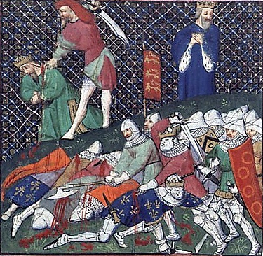 Династический кризис, последовавший за смертью последнего прямого потомка Капетингов в 1328 году, привёл к серии конфликтов, известных как Столетняя война, между домом Валуа и домом Плантагенетов. Война формально началась в 1337 году при попытке Филиппа VI захватить территорию Аквитании у её наследующего владельца, Эдуарда III, претендента на престол Франции от Плантагенетов. Несмотря на первичный военный успех Плантагенетов, включая разгром и пленение Иоана II, военная фортуна перешла к Валуа в более поздние годы войны. Самой известной фигурой этой войны является Жанна д’Арк. Война окончилась победой Валуа в 1453 году.