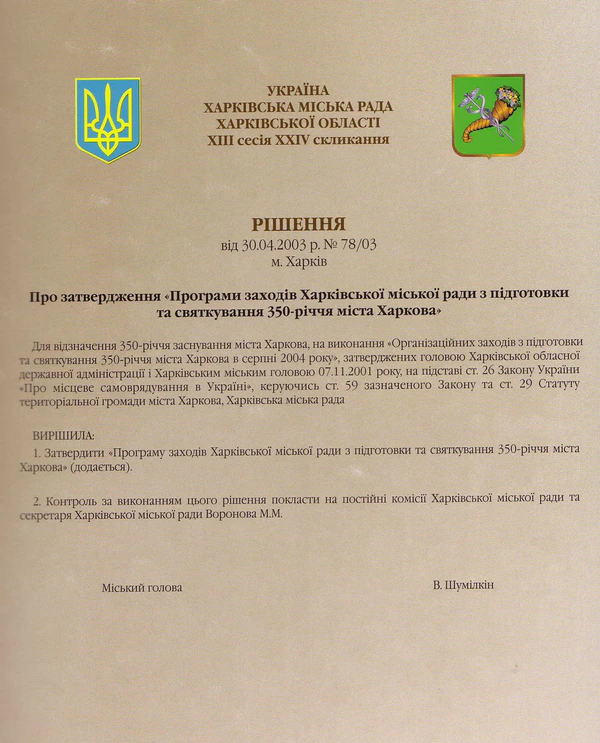 В 2004 году было отпраздновано 350-летие Харькова.