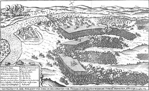 В 1592 году на саборе было принято решение о всеобщей мобилизации, предполагавшей участие в войне с турками всего дворянства и духовенства, а также горожан и отчасти крестьян. С битвой под Сисаком (1593) закончился начавшийся в 1493 году оборонительный период войн с турками[102]. С конца XVI века хорватские земли образовывали Триединое королевство «Хорватии, Славонии и Далмации». Геополитическое название «Хорватия» закрепилось за областью с центром в Загребе. Эту пограничную полосу австрийской территории хорваты назвали «остатками остатков некогда славного Хорватского королевства»[103].