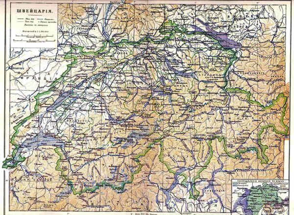 - Водовозов В. В., Крживицкий Л., Рихтер Д. И. Швейцария // Энциклопедический словарь Брокгауза и Ефрона : в 86 т. (82 т. и 4 доп.). — СПб., 1890—1907.
