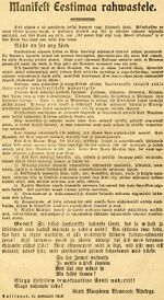 19 февраля 1918 года Земский совет сформировал Комитет спасения Эстонии в составе Константина Пятса, Юри Вильмса и Константина Коника. Комитет 24 февраля опубликовал «Манифест ко всем народам Эстонии», объявлявший Эстонию независимой демократической республикой, нейтральной по отношению к российско-германскому конфликту[83]. Комитетом было сформировано Временное правительство Эстонии.