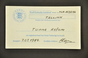 - ↑ условием получения карточки было устное заявление о поддержке независимости Эстонской Республики День восстановления независимости Эстонии