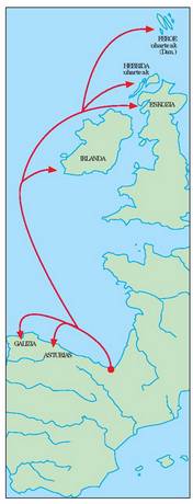 2(С запада на восток): Андай, Сен-Жан-де-Люз, Гетари и Биарриц во французской стране Басков; Бермео, Лекейтио, Ондарроа, Мотрико, Дева, Сумая, Гетария, Сараус, Орио, Сан-Себастьян, Пасахес, Фуэнтеррабиа и Ирун в испанской стране Басков; Сан-Висенте-де-ла-Баркера-Уриамбре, Комильяс, Суансес, Сантандер, Сантонья, Ларедо и Кастро-Урдьялес в Кантабрии; Фигерас, Тапия, Пуэрто-де-Вега, Луарка, Кадаведо, Кудильеро, Авилес, Луанко, Кандас, Хихон, Тасонес, Льястрес, Антреллуза, Рибадеселья и Льянес, в Астурии; Камариньяс, Лаге, Корме, Мальпика, Кайон, Седейра, Сан-Цибрао, Бурела, Фос-Нейс и Рибадео в Галисии.