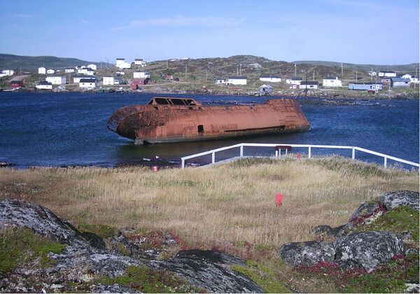 В 1978 г. в Рэд-Бэй был найден затонувший корабль. Он считается баскским испанским трёхмачтовым галеоном Сан-Хуан длиной 27,1 м и водоизмещением 250-300-т, утерянное в 1565 г. Сан-Хуан перевозил груз в примерно 1000 баррелей китового жира и потерпел крушение во время осеннего шторма. Сначала на северной стороне Сэддл-Айленда у него затонула корма, потом он несколько раз ударился днищем о дно моря, и, наконец, в 30 ярдах от берега у него сломался киль[24]. Капитану, Жоанесу де Порту, и экипажу удалось спасти паруса, такелаж, некоторые припасы и примерно половину китового жира. Экипаж приплыл в Испанию на другом судне. На следующий год де Порту спас с корабля ещё кое-что, пока он окончательно на затонул[10]. Потом в Рэд-Бэй было обнаружено ещё три затонувших судна, последнее в 2004 г.[25] Обугленные фрагменты корпуса второго корабля, найденного в 1983 г., дают все основания полагать, что судно затонуло из-за пожара.[24]