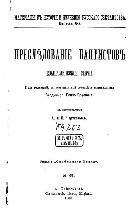 - Никольская Т. К. Русский протестантизм и государственная власть в 1905—1991 годах. — СПб.: Издательство Европейского университета в Санкт-Петербурге, 2009. — 356 с. — (Территории истории; Вып. 2). — ISBN 978-5-94380-081-8.