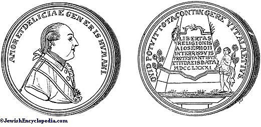 Иосиф II (1780—1790), сын и наследник Марии-Терезии, сразу же по восшествии на престол намеревался облегчить состояние евреев в стране. В результате венгерское правительство издало 31 марта 1783 года указ, который отменял притеснение евреев. Евреям стало разрешено селиться по всей стране. Всё, что могло оскорблять их религиозные чувства, было устранено.
