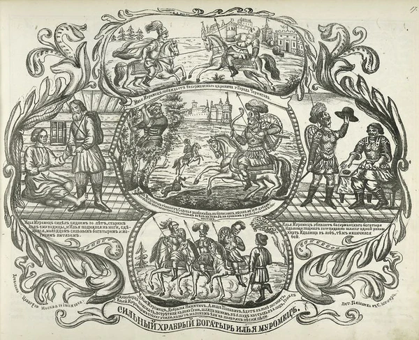 Другой предшественник комикса получает развитие в XVII—XIX веках — это русский лубок[2], рассказывающий последовательные истории в картинках в сопровождении текста. Уже тогда художники использовали «пузырь», в который вписывались реплики героев[3]. Текст лубка зачастую был трудночитаем, содержал ошибки. Текст в этом случае являлся не совсем текстом, а в некотором смысле его изображением, неотъемлемым атрибутом картинки, подобно клеймам на иконах[4].