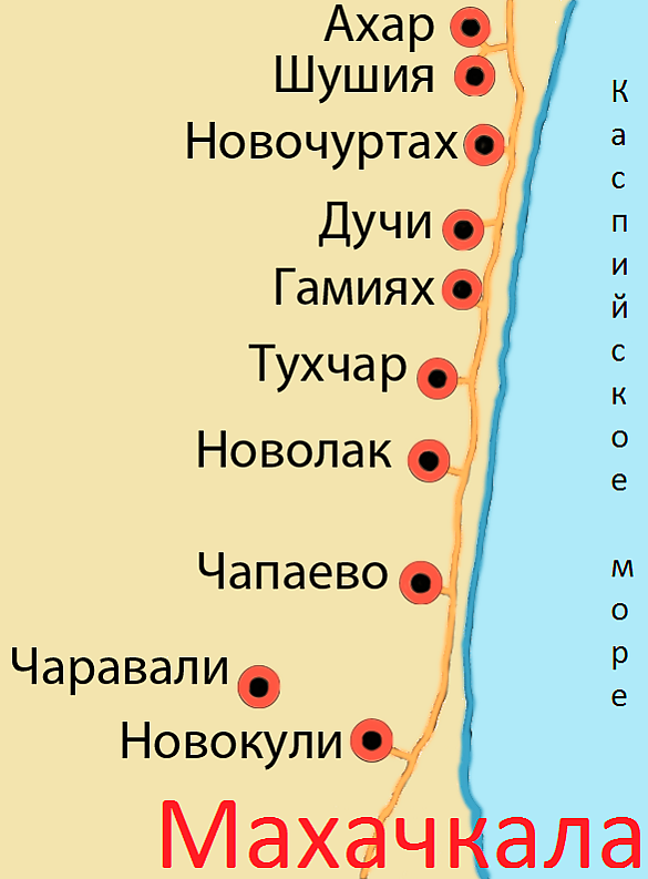 Летом 1944 году на равнину, вместо депортированных 23 февраля чеченцев, была насильственно переселена часть лакцев из 43 пунктов, а их дома разрушены: 26 сёл частично и 18 полностью. Из них Арчутта, Ахар, Буртни, Варай, Вилтах, Дучи, Курхи, Марки, Ницовкра, Сундаралу, Турчи, Тухчар, Чаравали, Чаях, Шушия, Халапки, Ханар. Переселению подверглись также аварские и кумыкские сёла[9][10].