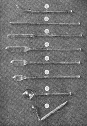 Эманация радия также пропускалась через стеклянные или металлические трубки или плоские стеклянные аппликаторы и применялась так же, как радиевые трубки. В других случаях его также осаждали на металлические наконечники или плоские металлические поверхности с помощью электрических устройств, которые имели тот же уровень радиоактивности, что и исходный радий, но действовали в течение более короткого времени. Один из способов лечения заключался в том, чтобы затем с помощью гальванического тока ввести отложения радиоактивного материала в ткани. Существовал также метод применения эманации радия с помощью специально разработанного аппликатора, изготовленного с учётом потребностей пациента, который впоследствии мог забрать его домой[29].