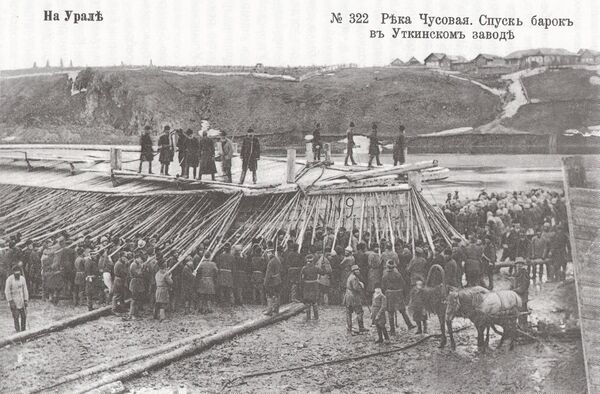 С середины XIX века получило развитие прокатное производство, продолжало развиваться стальное и чугунное литьё. Мировую известность получило литьё Каслинского завода. На крупных заводах было освоено рельсопрокатное производство[194]. В 1859 году на заводах Урала было выплавлено 12,2 млн пудов чугуна, что составляло около 2/3 всего чугуна, выплавленного в России[196].