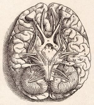 Революция произошла как в неврологии в частности, так и в анатомии в целом, когда Андреас Везалий опубликовал свою работу De humani corporis fabrica в 1543 году. Она включает подробные изображения желудочков, черепных нервов, гипофиза, мозговых оболочек, структур глаза, сосудистого снабжения головного и спинного мозга, а также изображение периферических нервов[18]. Везалий, в отличие от многих своих современников, не разделял распространённое в то время мнение, что желудочки отвечают за работу мозга, утверждая, что многие животные имеют желудочки, схожие с человеческими, но не обладают истинным интеллектом[19]. По-видимому, он редко извлекал мозг из черепа перед разрезом, и на большинстве его диаграмм мозг изображён внутри отрезанной головы[20].