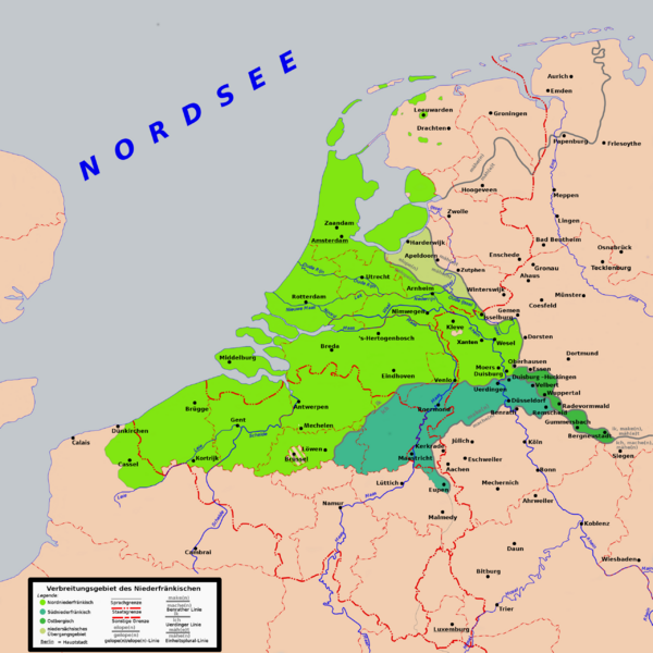 Нидерландский язык относится к нижнефранкской подгруппе западногерманского диалектного континуума. Франкские диалекты восходят к диалекту салических франков раннего средневековья. Согласно Ф. Энгельсу, самые первобытные формы можно увидеть в словарном запасе древних нижне- и среднефранских диалектов (рипуарские, мозельфранкские)[1].