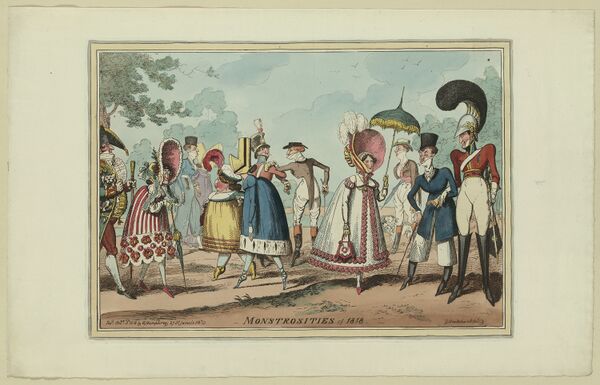 В городе в моде верхняя одежда небольших размеров: женский казакин — узкая куртка до бёдер — и короткий мужской вест. Все носят большие шляпы на манер англичан.