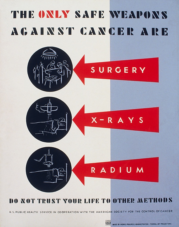 Когда Мария Кюри и Пьер Кюри открыли радиацию в конце XIX века, они случайно обнаружили первый эффективный нехирургический метод лечения рака. С появлением радиации появились и первые признаки междисциплинарного подхода к лечению рака. Хирург больше не работал в одиночку, а сотрудничал с радиологами больницы, чтобы помочь пациентам. Сложности в коммуникации, которые это повлекло за собой, а также необходимость лечения пациентов в стационаре, а не на дому, привели к появлению параллельного процесса сбора данных о пациентах в больничные карты, что в свою очередь привело к первым статистическим исследованиям пациентов[14].