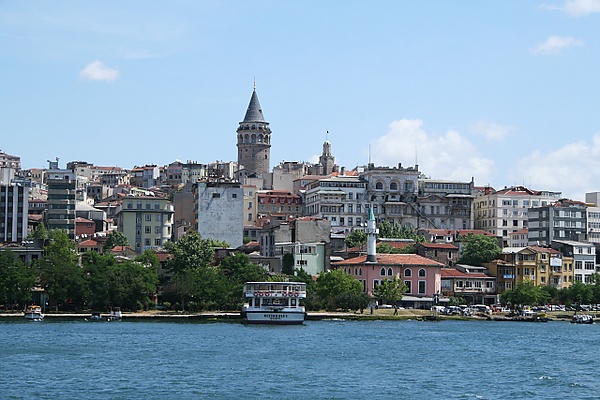 Основное население Галаты составляли греки, армяне, евреи, западноевропейцы (или «франки», главным образом генуэзцы, венецианцы, французы, англичане, голландцы) и левантийские арабы-христиане, жившие хоть и обособленно, но под строгим контролем османской администрации. Этот район был центром морской торговли Стамбула, у его причалов стояли торговые суда со всех концов света. Вокруг порта на узких улочках концентрировались склады, судоремонтные мастерские, цехи по изготовлению снастей и парусов, торговые ряды, постоялые дворы, гостиницы, публичные дома и таверны. К Галате примыкали военные верфи в районе Касымпаша (на побережье Золотого Рога) и артиллерийский арсенал в районе Топхане (на берегу Босфора), вокруг которых выросли многонациональные рабочие посёлки. Севернее Галаты на холмах, ранее занятых виноградниками и садами, в XVI—XVII веках сложился богатый район Пера (турки называли его Бейоглу, что означает «Сын принца» — один из трапезундских принцев династии Великих Комнинов, обратившись в ислам, обосновался в этом районе). Здесь среди просторной застройки размещались посольства европейских держав, дома богатых купцов из числа «франков» и греков, офисы торгово-финансовых компаний, магазины западного типа, множество католических церквей (в том числе церковь Святой Марии Драперис) и греческое кладбище[комм. 32]. Вокруг небольшой деревни Бешикташ, отделённой от Топхане пустырями, султаны и придворная знать строили богатые загородные виллы и гаремы, разбивали вокруг них красивые сады с фонтанами и павильонами. Здесь же располагалась пристань, с которой небольшие лодки и паромы перевозили грузы и пассажиров на азиатский берег Босфора[192][193][194][195].