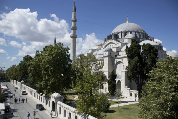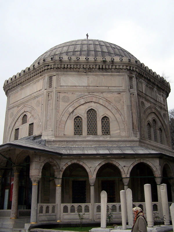 В 1557 году Синан закончил строительство ещё одного выдающегося строения — мечети Сулеймание, которая, по задумке султана, должна была служить памятником его великолепному правлению. Огромная стоимость строительства и затянувшиеся сроки сдачи объекта сильно раздражали Сулеймана, но полученный результат позволил султану сменить гнев на милость (в комплекс, помимо собственно мечети, входили несколько медресе и начальных школ, библиотека, обсерватория, больница, медицинская школа, бани, кухни, гостиница, конюшни и лавки). Это была первая стамбульская мечеть с четырьмя минаретами. Один из минаретов, названный позже «Драгоценным», был украшен дарами иранского шаха Тахмаспа, полученными султаном в качестве издёвки. Несколько гранитных колонн, которые поддерживают боковые аркады, ранее находились на площади Августеон и во дворце Юстиниана. Во дворе мечети в двух соседних богато украшенных тюрбе похоронены сам Сулейман Великолепный и его любимая жена Хюррем Султан (скончалась в апреле 1558 года)[91][92].