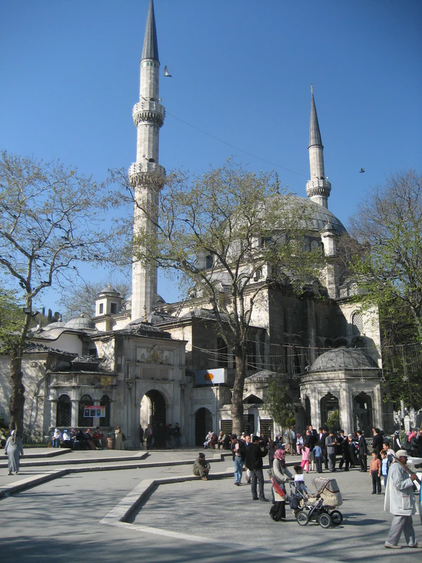 В 1554 году в Стамбуле открылась первая кофейня (кахвехане), предназначенная исключительно для дегустации недавно завезённого сирийцами кофе, после чего этот напиток становится очень популярным, а кофейни превращаются в наиболее посещаемые заведения города[89]. В 1555 году по приказу султана был казнён великий визирь Кара Ахмед-паша, женой которого была сестра Сулеймана Фатьма Султан (оба они похоронены в тюрбе при мечети Кара Ахмед-паши, построенной Синаном за год до казни визиря). В 1556 году по проекту Синана была возведена мечеть Шах Султан, заказчицей строительства которой выступила сестра султана Шах Султан. В том же 1556 году Синан построил возле Айя-Софии роскошные бани Хасеки, предназначенные для султанского гарема (их заказчицей была влиятельная хасеки Хюррем). Хаммамы играли в Стамбуле особую роль, наряду со своим прямым назначением они служили местом отдыха и встреч, где мужчины проводили часы в беседах за чашечкой кофе и кальяном. В городе были построены десятки крупных и сотни мелких бань, многие из которых представляли собой выдающиеся произведения архитектуры. Тип классического хаммама сложился под влиянием византийских терм, с которыми турки познакомились ещё в сельджукский период. В обслуге хаммамов работали тысячи людей — от истопников и уборщиков до высокоуважаемых массажистов и костоправов[90].