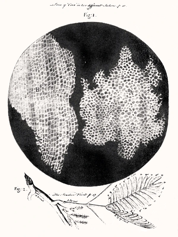 В 1665 году английский учёный Роберт Гук при исследовании тонких срезов пробковой коры под микроскопом обнаружил множество мелких ячеек, которые он назвал «клетками» (англ. cell — ячейка, комната). Он описал свои наблюдения в книге «Микрография».