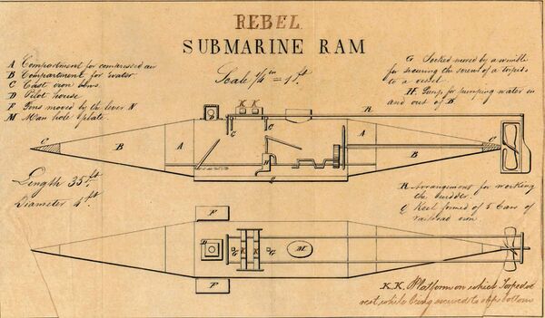 Среди них отличилась лодка CSS H.L.Hunley (1864), созданная в КША Хорасом Л. Ханли во время Гражданской войны, для флота Конфедерации. Она стала первой в истории подводной лодкой, потопившей вражеский корабль. Она была средней между «Наутилусом» Коёссенов и вышеозначенной подводной лодкой; выстроенная из железных листов, 12 м длины и 1 ½ ширины; экипаж состоял из 9 человек, из них 8 вращали маховиками винт. На ходу подводная лодка погружалась действием боковых рулей; запас воздуха для 2 часов пребывания под водой; на тихой воде ход — 4 узла. Погружение осуществлялось заполнением двух балластных цистерн на носу и корме, которые для всплытия продувались ручными помпами, а для срочного всплытия сбрасывался железный балласт, закреплённый на днище. Гребной винт вращался при помощи коленчатого вала восемью матросами. Вооружение состояло из мины, закреплённой на длинном стальном шесте на носу лодки. Наблюдение, вход и выход экипажа из лодки осуществлялись через две небольшие башенки. Эта лодка неоднократно тонула, и в ней погибали люди, но всякий раз она была поднимаема и исправляема. В 1864 году лейтенант Диксон с 8 человеками экипажа взорвал адмиральское судно союзного флота «Housatonic», которое блокировало Чарльстоун, но и подводная лодка со всеми людьми погибла. Этот случай — единственный в истории военно-морских войн в XIX веке.