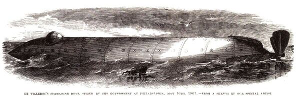 В 1861 году французский инженер Брутус де Вильруа построил в Филадельфии подводную лодку, названную «судно-сигара»; 11,5 м длины, диаметр 1,1 м. Гребной винт приводился в действие машиною, сведения о которой не сохранились. Хотя эта подводная лодка в деле не была, она послужила моделью для целой серии подводных лодок, фигурировавших во время американских войн.