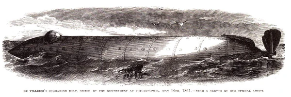 В 1861 году французский инженер Брут де Вильруа построил в Филадельфии подводную лодку, названную «судно-сигара»; 11,5 м длины, диаметр 1,1 м. Гребной винт приводился в действие машиною, сведения о которой не сохранились. Хотя эта подводная лодка в деле не была, она послужила моделью для целой серии подводных лодок, фигурировавших во время американских войн.
