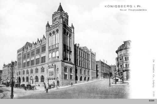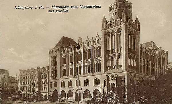В 1849 году для городской почты выстроили здание Главпочтамта на месте выкупленного в 1847 году дома престарелых. Здание располагалось на улице Постштрассе (Poststraße — Почтовая улица), рядом с замком[1]. В 1850 году в Кёнигсберге были выпущены первые прусские почтовые марки.