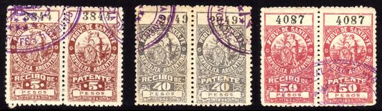 В Аргентине выпускалось множество фискальных марок как национальным, так и местными правительствами.