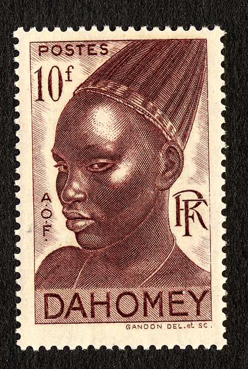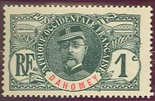 Первые марки колониальной почты Дагомеи были эмитированы в 1899 году[2][9]. Среди знаков почтовой оплаты для Дагомеи также имеются марки колониального типа с впечатанным названием страны[≡].