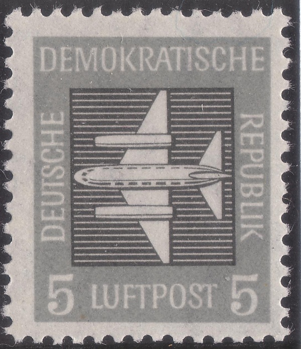 Первые авиапочтовые марки ГДР вышли в декабре 1957 года. На них было помещено стилизованное изображение самолёта. С октября 1982 по октябрь 1987 года выпускалась вторая серия авиапочтовых марок с изображением стилизованного самолёта над письмом. Марки были изъяты из обращения 2 октября 1990 года[3][5].