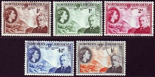 Первым коммеморативным выпуском Северной Родезии стала серия из пяти марок, вышедшая 30 мая 1953 года в ознаменование столетия со дня рождения Сесиля Родса, вместе с ещё одной маркой, выпущенной в тот же день по случаю посвящённой юбилейной выставке Родса. Поскольку на троне уже была Елизавета II, на марках был помещён её профиль, несмотря на то, что официальные коронационные марки увидели свет только 2 июня: