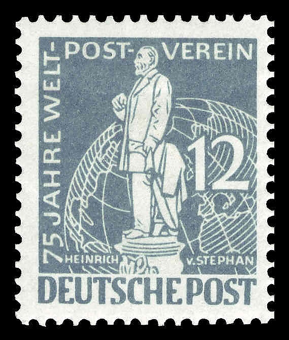 В апреле 1949 года вышли первые коммеморативные марки 3ападного Берлина — 75-летие Всемирного почтового союза было отмечено выпуском серии из семи миниатюр с изображением памятника Генриху фон Стефану[1][2][4].