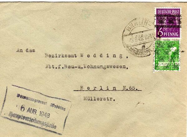 В августе 1945 года в Берлине в обращение вышли почтовые марки Главной почтовой дирекции Берлина с надписью нем. «Stadt Berlin» (Город Берлин). Они использовались на территории всего города. С 17 августа 1945 года в американском и английском секторах Берлина использовались марки, предназначенные для соответствующих зон оккупации Германии. В феврале 1946 года в обращение поступили марки Контрольного совета в Германии — единые для всех зон оккупации Германии, однако марки Главной почтовой дирекции Берлина продолжали находиться в обращении вплоть до 16 октября 1946 года.[1][2][3][4]