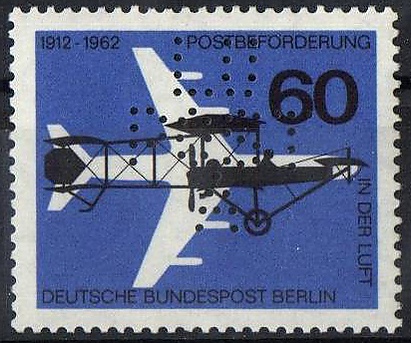 В 1962 году марка 3ападного Берлина в честь 50-летия авиапочты была снабжена надписью «Lu/post /а» с помощью трёхстрочной перфорации. Всего было выпущено 24,5 тысячи экземпляров этой сувенирной марки. Она продавалась на международной авиафилателистической выставке «Люпоста 1962», проходившей в 3ападном Берлине. В почтовом обращении эта марка не находилась.[2]