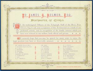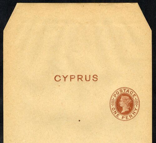 Выпущенная в 1880 году бандероль Великобритании для пересылки газет с надпечаткой «Cyprus» («Кипр»). Прошедших почту экземпляров не сохранилось
