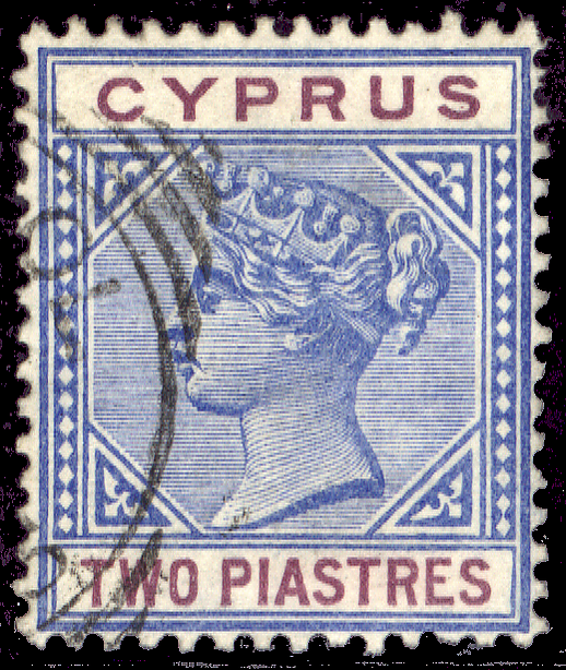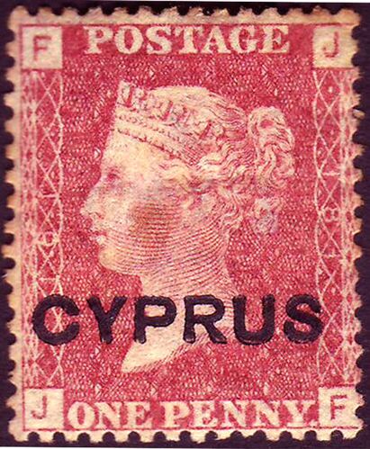 С 1880 года в почтовом обращении на Кипре стали применяться собственные марки. Первые кипрские марки были идентичны таким же маркам, выпущенным в Великобритании, но на них была сделана надпечатка названия острова англ. «Cyprus» («Кипр»)[2][≡]. Первая серия состояла из 6 марок номиналами от полпенса до 1 шиллинга.[3]
