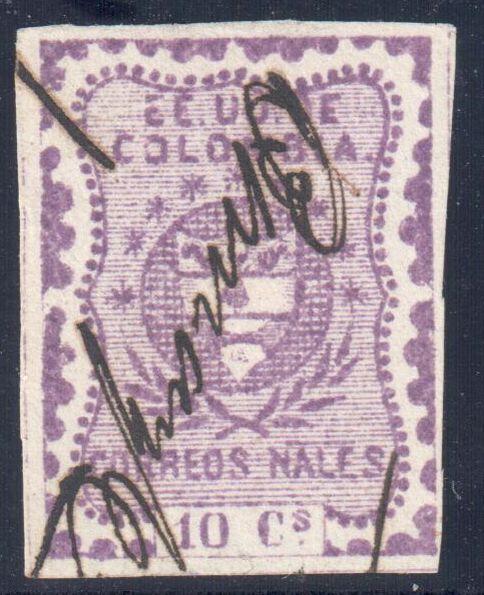 1 сентября 1859 года в продажу поступили первые колумбийские знаки почтовой оплаты. В то время Колумбия называлась Гранадской конфедерацией. Таким образом, первыми почтовыми миниатюрами страны являются марки Гранадской конфедерации. Второй выпуск появился в 1860 году.