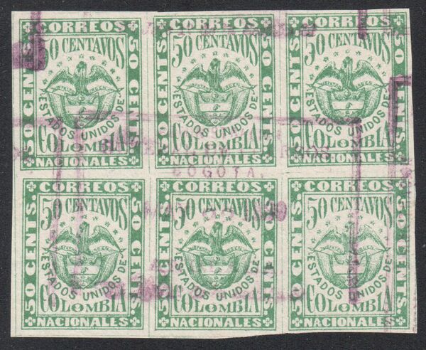 Почтовые марки с надписью «Estados Unidos de Colombia» («Соединённые Штаты Колумбии») выпускались до 1886 года[8]. Вскоре после этого вышел четвёртый выпуск марок — с надписью «Соединённые Штаты Колумбии». Ещё четыре выпуска завершили классический период в 1868 году. Всего за это время было эмитировано 42 почтовые марки.